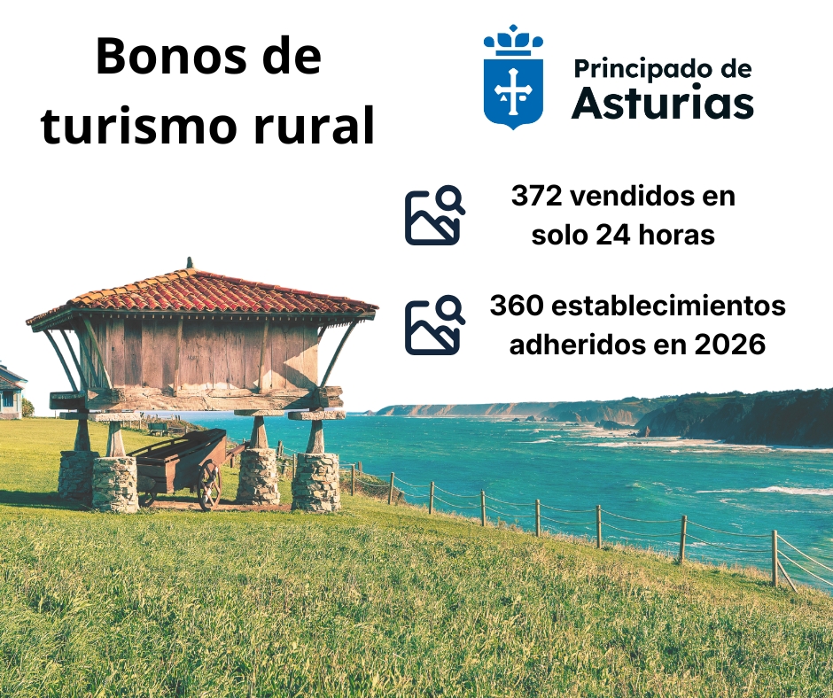 La nueva campaña de bonos de turismo rural puesta en marcha por el Gobierno del Principado de Asturias ha arrancado con una respuesta muy positiva tanto por parte de la ciudadanía como del sector empresarial. En las primeras 24 horas desde su activación, ya se han vendido 372 bonos y la red de alojamientos adheridos ha crecido de forma notable, con un incremento cercano al 73%, al pasar de los 208 establecimientos registrados en 2025 a los 360 actuales.
