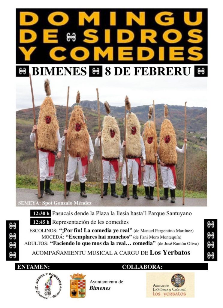 El concejo de Bimenes acogerá este próximo domingo 8 de febrero una nueva edición del Domingu de Sidros y Comedies, una de las celebraciones más singulares del calendario tradicional asturiano, vinculada al ciclo del Antroxu y a las mascaradas de invierno.